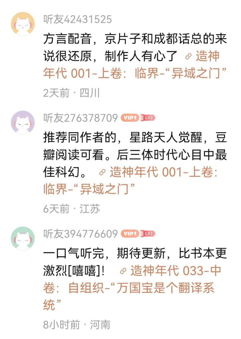 目前,《造神年代》有声剧的大结局已圆满收官。据悉,其影视化项目正在稳步推进。我们满怀期待,这部作品能在更大的屏幕上续写传奇,也期望更多如《造神年代》这般的优质科幻 IP,借助多媒介融合的途径,迈向更广阔的天地。